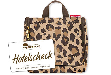 Mit dem Urlaubspaket jetzt schon vom nächsten Urlaub träumen. Sie erhalten sowohl den Hotelscheck als auch die praktische Reisenthel Kulturtasche direkt zu Ihnen nach Hause.